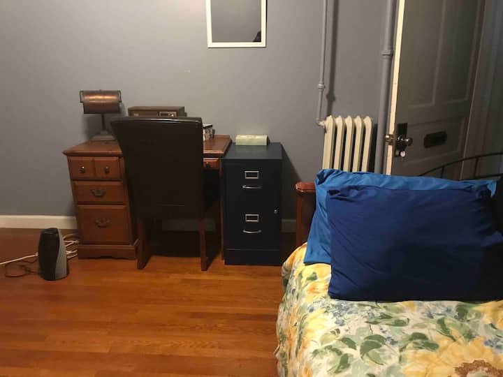 Io e mio marito stiamo restaurando la nostra casa del secolo (1896) nella pensione che era negli anni'20. Al momento ospitiamo noi stessi e la nostra co-host, la figlia adulta, Johanna. Quattro camere da letto private sono riservate agli ospiti Airbnb. La cucina, la sala da pranzo, il soggiorno, il ripostiglio e entrambi i bagni sono spazi condivisi in questo soggiorno in stile pensione/ostello.