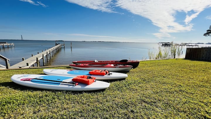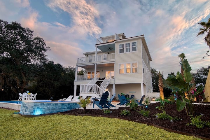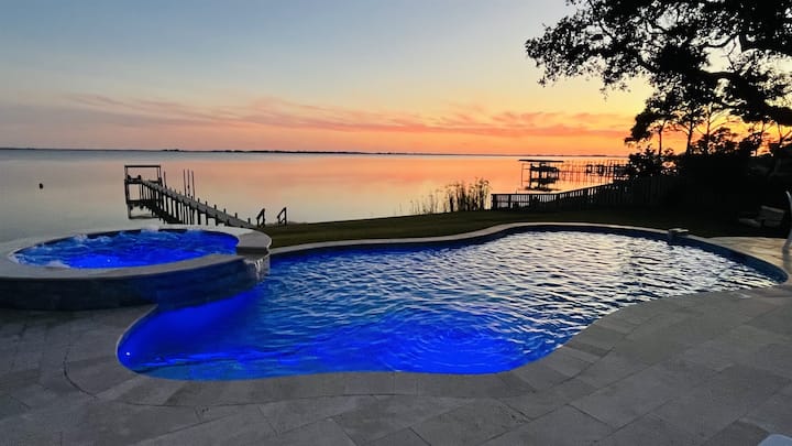 Questa incantevole villa può ospitare fino a 16 ospiti in totale (inclusi neonati e bambini) e si trova in una splendida cornice tropicale con vista mozzafiato sul Santa Rosa Sound, a 8 km da Navarre Beach, perfetta per riunioni di famiglia o incontri con gli amici.