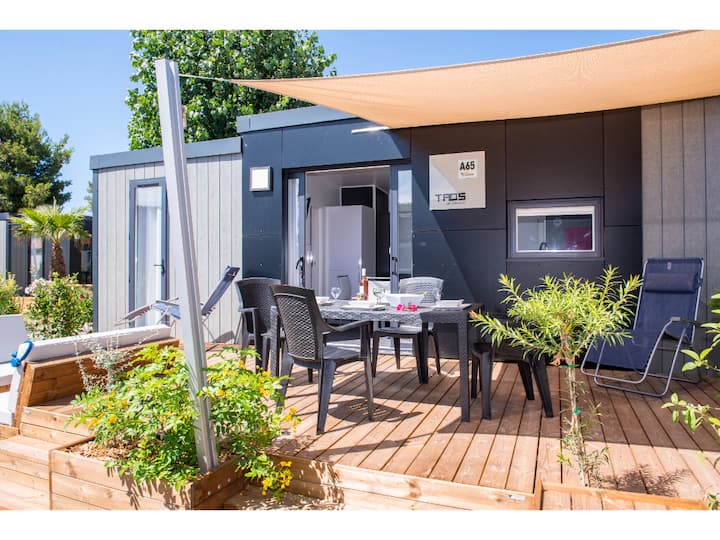 Ti diamo il benvenuto nella nostra accogliente casa mobile di 35 m ² a Vendres, che include: