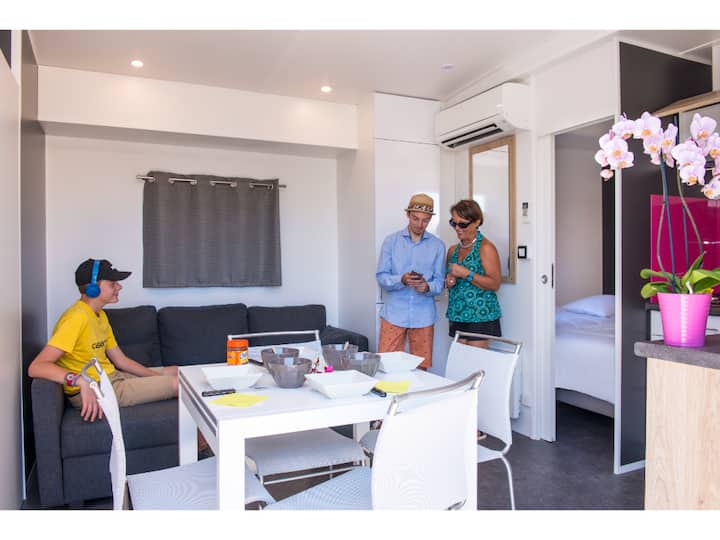 Fuggi nella città costiera di Vendres e concediti la migliore esperienza di vacanza nella nostra accogliente casa mobile con 2 camere da letto. Con una posizione tranquilla circondata da magnifici pini, la nostra casa mobile ti promette un'oasi di tranquillità. Fai un tuffo nella piscina all'aperto, partecipa a emozionanti campi sportivi e goditi emozionanti attività estive in loco. Dopo una giornata all'insegna dell'avventura, rilassati sulla tua terrazza privata mentre assapori il cibo delizioso preparato sulla tua plancha privata.