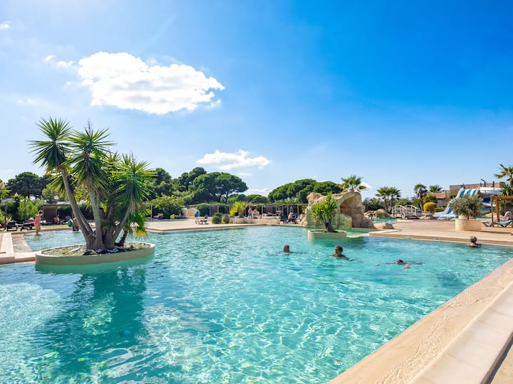 • Attività all'aperto: visita Aqualand Cap d'Agde per una giornata all'insegna del divertimento in un parco acquatico o fai una nuotata e altri sport acquatici sulla spiaggia di Valras-Plage (5 km).