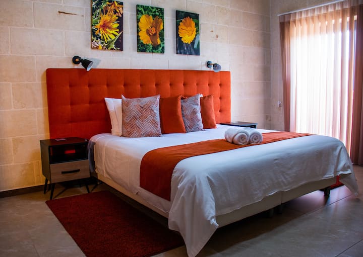 Ti diamo il benvenuto al SeaHollyGozo di Nadur, a Gozo. Il nostro boutique hotel è un vero AFFARE. Offre camere realizzate all'insegna del comfort, che uniscono il tradizionale fascino maltese e i comfort moderni, tra cui colazione a buffet, piscina, letto king-size, grande TV Fire e un'esperienza nello stile di vita maltese. Nelle vicinanze troverai ristoranti locali, mercati vivaci e la bellissima spiaggia di Ramla Bay. Al Sea Holly, ogni soggiorno è come essere a casa.