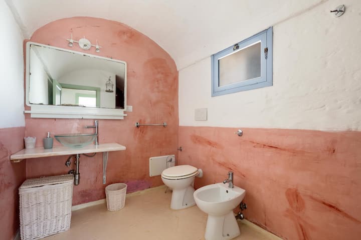 La casina si trova sotto un caratteristico porticato, al piano terra dell`antica masseria.