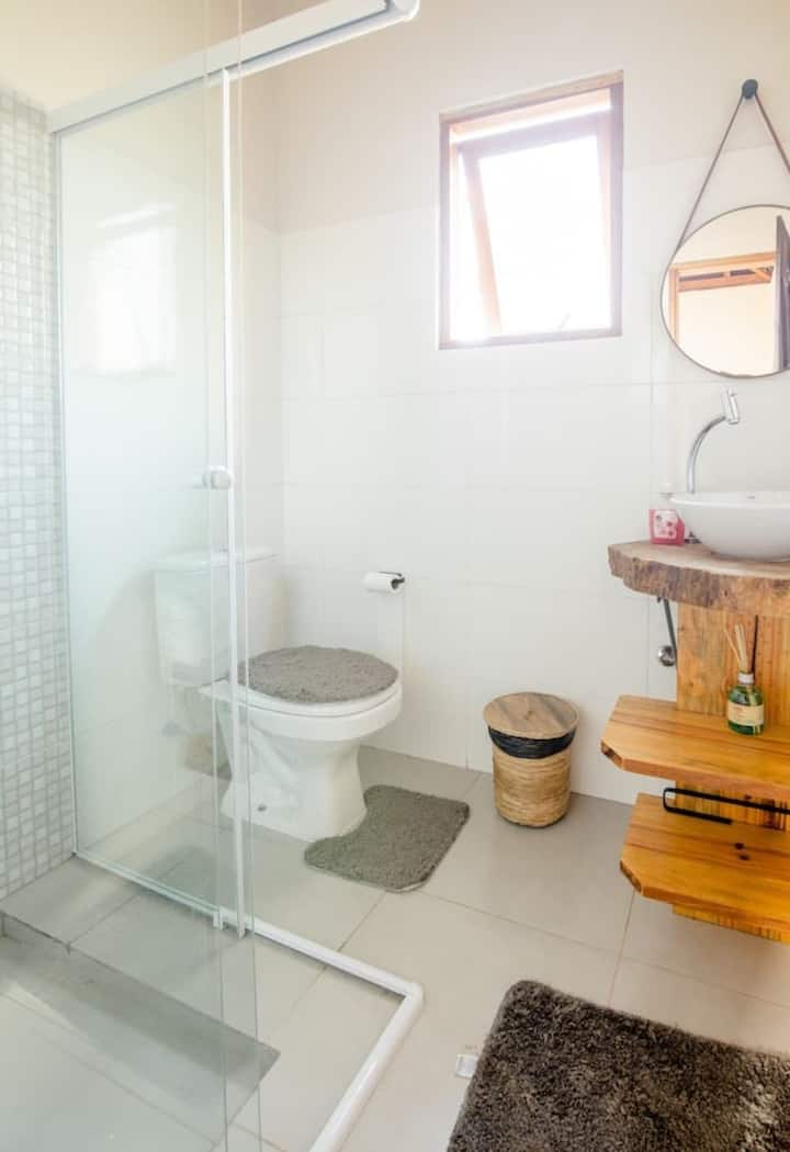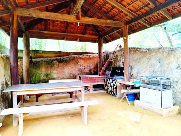 Dal piano inferiore della suite potrai utilizzare la nostra stufa a legna (R$25 per la legna da ardere), il lavello, il tavolo e il piccolo barbecue (porta la tua carbonella o acquistala da noi).