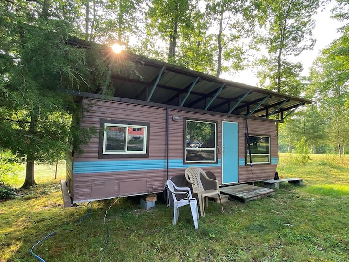 - Camper Hickory, casa principale rosa con bagno condiviso, bagno esterno condiviso, diversi spazi nel cortile, tra cui giardini