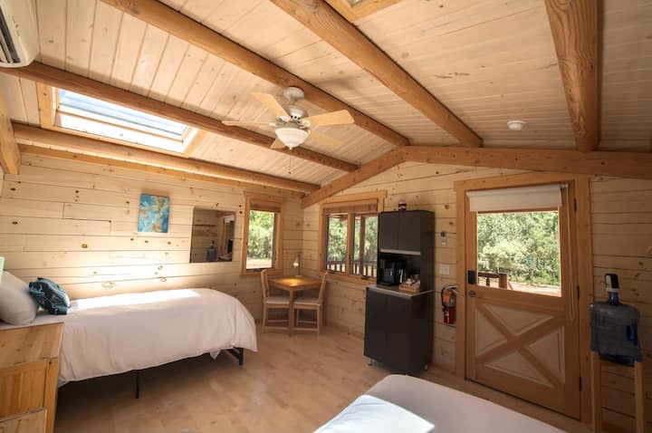 Ogni chalet dispone di un bollitore e di una selezione di caffè e tè in omaggio, che ti permetteranno di assaporare la tua bevanda preferita circondato dalla serenità della natura. Sono inoltre disponibili un mini frigo e un distributore d'acqua con acqua a osmosi inversa con minerali di Sedona Water Works, per una maggiore comodità durante il soggiorno.