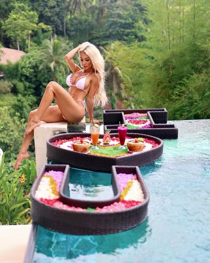 -flower pool, flower bath, romantic flower candle dinner, flower floating breakfast, outdoor cinema, private tours, all available with extra charge.