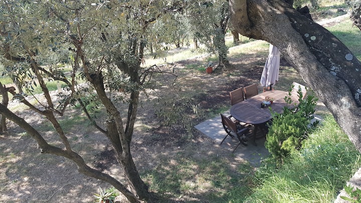 A disposizione degli ospiti: un giardino attrezzato con tavolo, due sdraio ed ombrellone con vista mare di 40 mq, due terrazzini vista mare di cui uno con tavolino e due sedie, un uliveto di 400 mq con tavolino, due lettini prendisole, doccia all'aperto e tavolo da colazione con sedie. E' presente nell'uliveto un orto didattico.