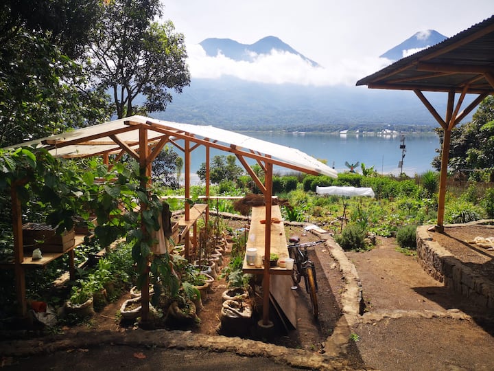 Accogliente eco-suite sul lago ~ Vista sul giardino e sul vulcano