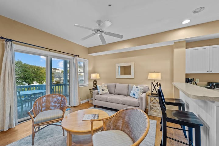 Mentre entri nel quartiere di Cambridge Cove, parte della comunità di Bermuda Bay, potresti chiederti se hai preso una svolta sbagliata da qualche parte e sei finito su un'isola caraibica. Le vivaci tonalità delle case e della piscina della comunità sono luminose e allegre e creano una favolosa prima impressione della tua casa vacanze Outer Banks.