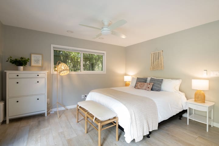 -Lux Master Suite: la camera da letto principale è un santuario a sé stante, con un grande letto king-size e un bagno di lusso con tutti i servizi che desideri. Immergiti nella vasca profonda o rinfrescati nella doccia separata.