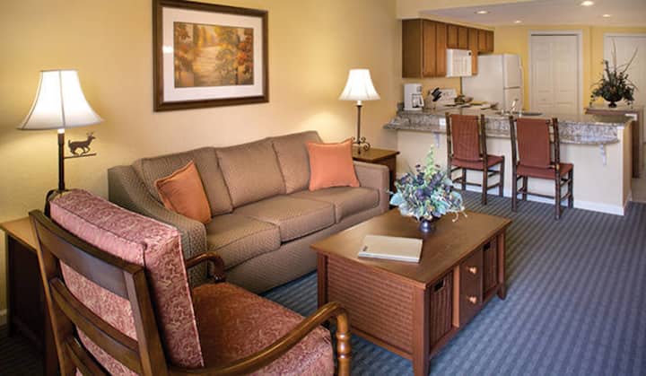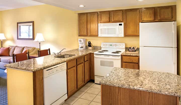 A Smoky Mountains, queste spaziose suite resort con una, due e tre camere da letto possono ospitare comodamente da quattro a otto persone e vanno da 558 a 1.532 piedi quadrati. Dispongono di stanze private con un letto king-size nella camera padronale, due letti matrimoniali o un letto matrimoniale grande nelle camere degli ospiti e un divano letto matrimoniale nella zona giorno. Apprezzerai l'economia di una mini o di una cucina completa e la comodità di una lavatrice/asciugatrice in ogni suite. Inoltre, nella maggior parte delle suite sono disponibili una vasca idromassaggio e un balcone, con un soggiorno/zona pranzo separato e TV dappertutto.