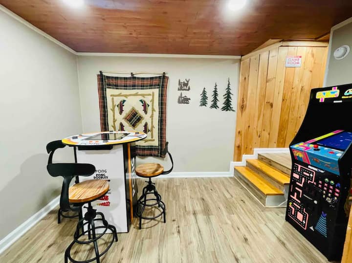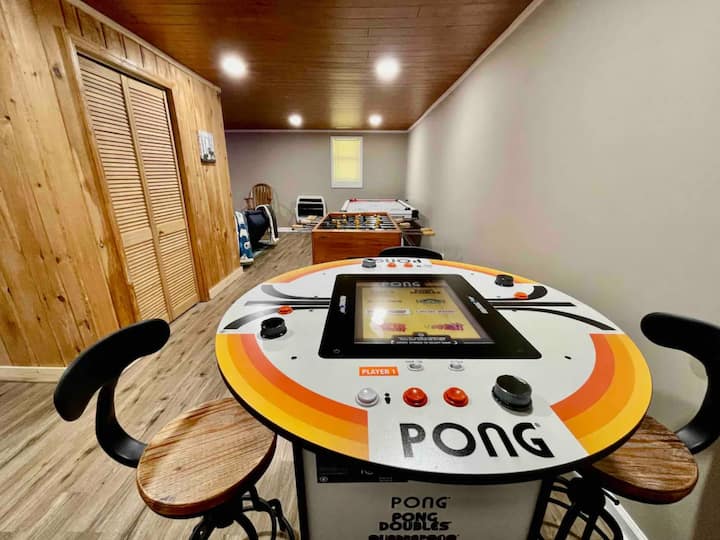 Le camere da letto principali e a soppalco, così come la zona soggiorno, sono dotate di smart TV, in modo da poter usufruire dei servizi di streaming: Netflix gratuito a carico nostro. L'area loft è dotata di tavolo da gioco e postazione di lavoro con 2 monitor. Il piano inferiore (seminterrato) offre divertimento per tutta la famiglia con una vasta sala giochi piena di air hockey, biliardino e una TV con Xbox 360, Nintendo Classic e Super Nintendo. Nella nostra area loft, forniamo anche una vasta selezione di alcuni dei giochi da tavolo più popolari (ad esempio, Ticket to Ride, Uno, Jenga, Monopoly, Clue, Miniature Bean Bag Toss) oltre a un set di giochi da tavolo da 15-in-1 che viene fornito con Checkers, Chess, Chinese Checkers, Parcheesi, TicTacToe, Solitaire, Snakes and Ladders, Mancala, Backgammon, Poker Dice, Playing Cards, Go Fish, Old Maid e Dominos.