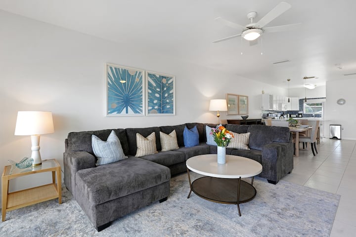 Progettato con cura con finiture di fascia alta, Coconut Bay #122 ha una disposizione spaziosa su tre piani. Il piano terra ospita la cucina attrezzata, il soggiorno e la zona pranzo aperti e un patio esterno ombreggiato. Due camere da letto si trovano al secondo piano, una con bagno en-suite e un'altra con bagno adiacente e zona lavanderia. Una terza camera da letto privata è arroccata al terzo piano. La casa è arredata con set di camere da letto matrimoniali grandi in tutte e tre le stanze e include tocchi di lusso come mobili di fascia alta, elettrodomestici in acciaio inossidabile, aria condizionata centralizzata, ventilatori a soffitto, Smart TV, Wi-Fi e lavatrice/asciugatrice.