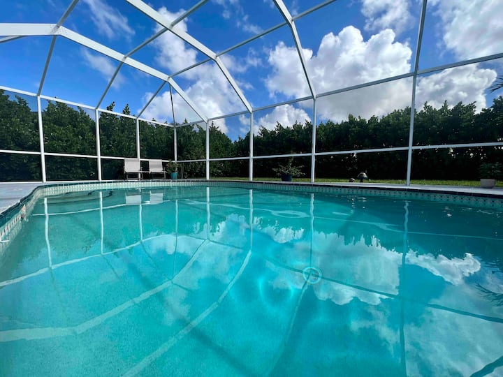 Piscina riscaldata con acqua salata e rilassante lanai