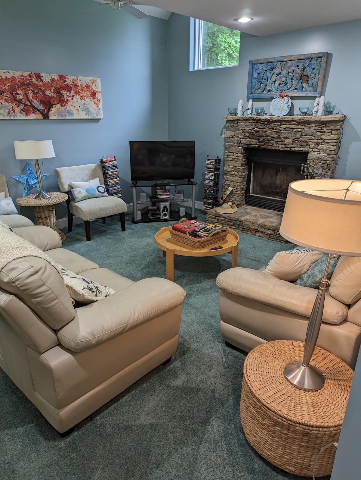 Allontanati e goditi il comfort e la comodità di questa casa A-Frame unica, recentemente ristrutturata, immersa in un quartiere tranquillo, sicuro e di lusso, a pochi minuti dal Clifty Falls State Park (10 minuti in auto), dal centro storico (5 minuti in auto), dallo shopping in cima alla collina (5 minuti in auto): Hanover College (15 minuti in auto) •Wifi veloce • Caminetto elettrico .Due TV Roku da 55", YouTube TV gratuito per le stazioni locali e via cavo •Keurig & Drip Coffee, K-cups, caffè locale, tè, acqua in bottiglia .Parcheggio nel vialetto di accesso lastricato .Griglia per barbecue a gas