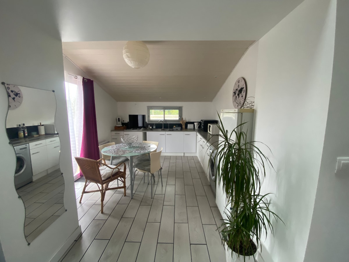 Se siete alla ricerca di tranquillità e natura, a 10 minuti dalle bellissime spiagge di Fouesnant les glénan e a 15 minuti da Quimper e Concarneau, la fattoria con orto biologico "Les jardins du vergers" vi propone il suo cottage contemporaneo con tutti i comfort per 4-7 persone.