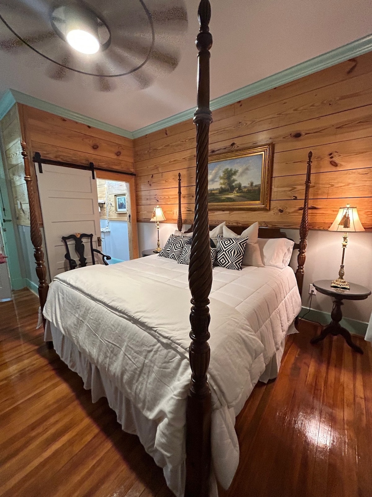 Fuggi nella nostra accogliente baita di campagna con 2 camere da letto, 1 bagno completo e 2 bagni di servizio. Lancia la lenza nello stagno di pesca condiviso, popolato di spigole, o goditi una piacevole gita in kayak o in pontone. Goditi la zona giorno esterna con ampio piano bar, frigorifero, lavandino, tv esterna e doccia esterna. Magari rilassati su un'amaca o gioca a buca per il mais, le freccette o il lancio dell'anello. Il grande focolare è perfetto per le notti frizzanti. Perfetta per una vacanza tranquilla. Prenota subito e crea ricordi indimenticabili