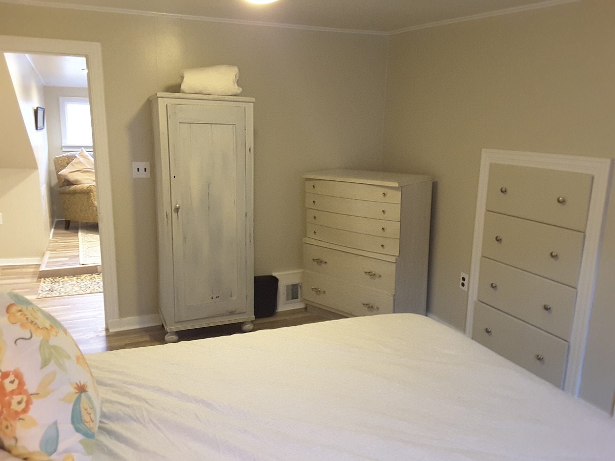 Questo mini monolocale è per chiunque abbia bisogno di un alloggio pulito e alla moda. Ha un nuovo letto matrimoniale, un divano letto, un angolo cottura e un bagno completo con un ingresso privato al 3 ° piano di una bellissima villa di Pittsburgh del 1890. Ha le dimensioni di una stanza grande e funziona molto bene con gli ospiti che hanno intenzione di lavorare, o uscire a godersi la città e tornare in un posto sicuro, pulito e confortevole per ricaricarsi per la notte(non adatto ai bambini di età inferiore a 10 anni).