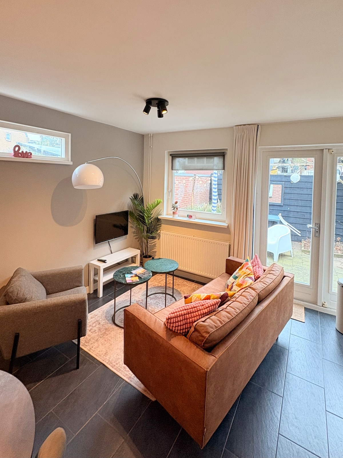Cottage in legno, costruito da noi nel 2020, in gran parte con materiale riciclato. Sul cottage ci sono ben 20 pannelli! Le travi e il colmo sono stati lasciati a vista, creando un effetto spaziale. Una finestra della stalla della fattoria dove è nata Karin è stata incorporata nel colmo. I vecchi mattoni gialli della fattoria formano la terrazza, insieme alle piastrelle del seminterrato. Come sorpresa, il marito di Karin ha creato un cuore sulla terrazza! Tutto sommato, un bel posto dove stare.
