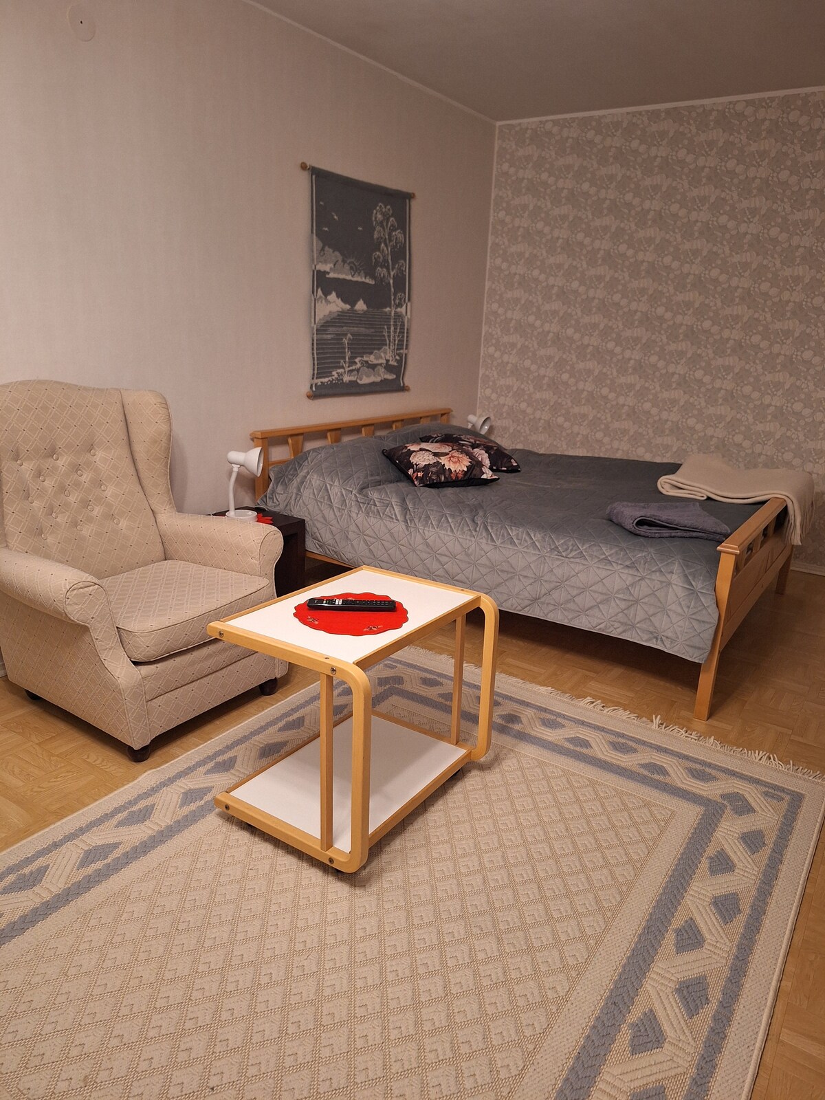 Ristrutturato (Foto della cucina aggiornata), appartamento spazioso e accogliente in un quartiere tranquillo, a 5km dal centro di Rovaniemi. L'appartamento dispone di una camera con un comodo letto a due piazze, una spaziosa zona giorno con cucina completa e divano letto, oltre a una zona loft. Siamo facilmente raggiungibili poiché viviamo nello stesso edificio e saremo felici di aiutarti. La zona è tranquilla e vicina alla natura, con un bellissimo lago nelle vicinanze. Abbiamo due biciclette per i nostri ospiti.
