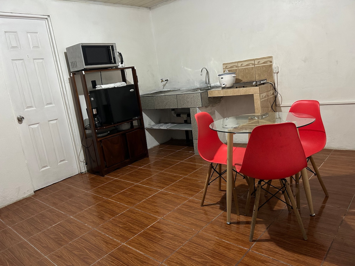 Monolocale con ingresso indipendente, bagno privato, 2 letti singoli e possibilità di posizionare un materasso ad aria aggiuntivo. Situato in una zona ricca di natura , splendidi paesaggi, cascate e fiumi. Grazie alla sua posizione, è il luogo ideale per riposarsi se si viene o si va alle spiagge caraibiche, Tortuguero, se si va nella zona di Fortuna, il vulcano Arenal. L'appartamento è piccolo ideale per un massimo di 3 persone, abbiamo una piscina ecologica con acqua naturale al 100%.