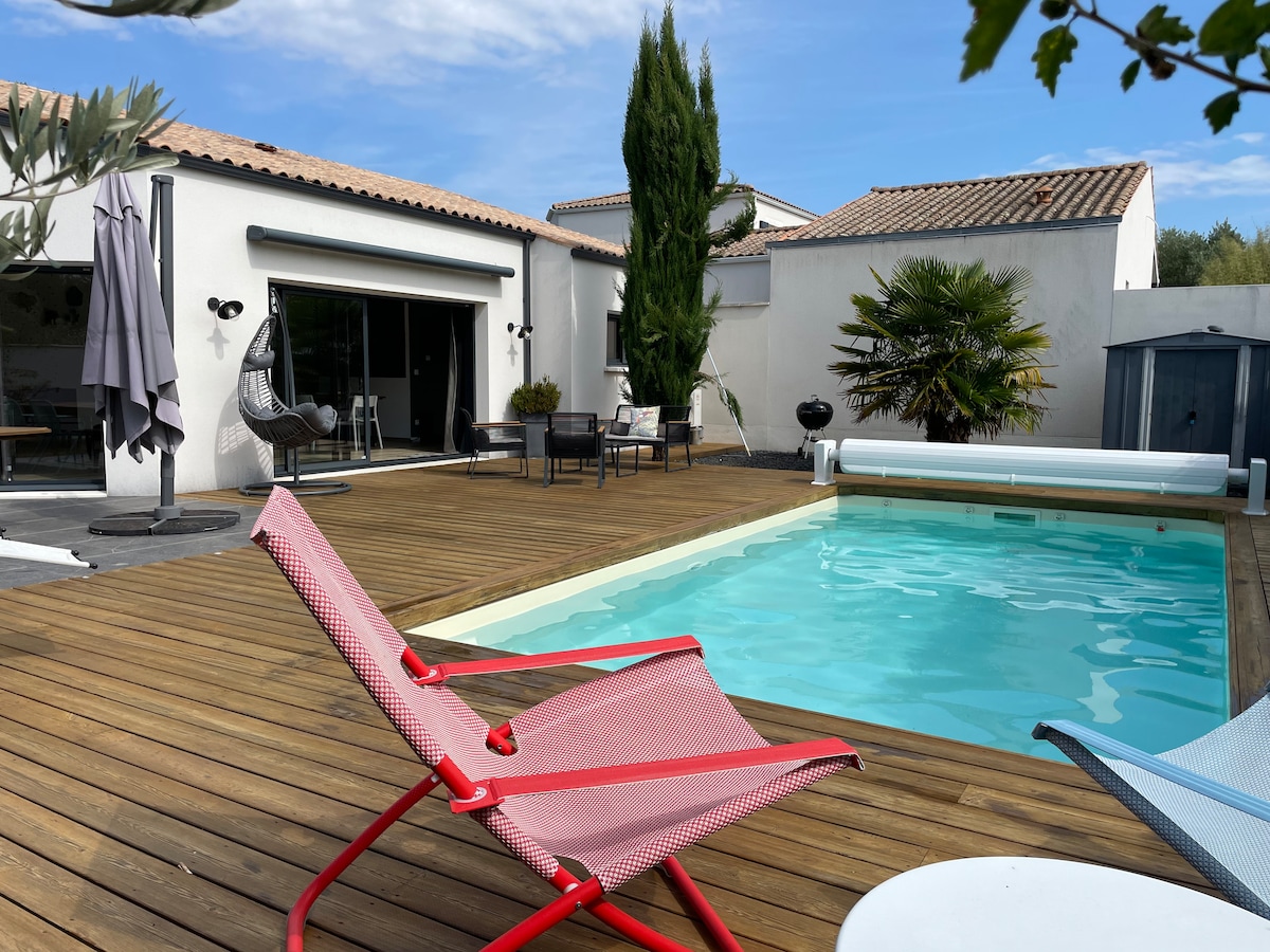 Villa di 280m² vicino alle spiagge, a Royan, allo zoo di Palmyre (7 km) e ai piedi del Golf. La casa dispone di una piscina riscaldata e della sua dependance in stile californiano. All'interno si trova una cucina completamente attrezzata aperta su un ampio soggiorno di 86m², la sua cantina XXL e una biancheria attigua. Al piano superiore sarete incantati da un ampio spazio relax con il suo retroproiettore che si affaccia su una grande terrazza di fronte all'oceano e alle tipiche capanne della nostra regione.