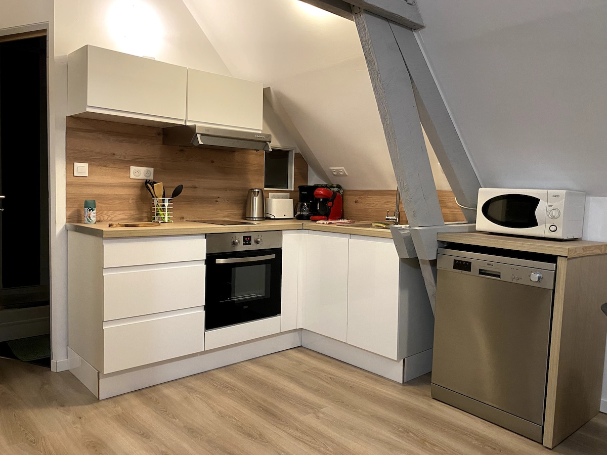 1 Appartamento, classificato 3⭐️, di circa 80m² che offre: un ingresso indipendente, dove è possibile depositare cappotti e scarpe. Al piano superiore troverete un ampio spazio abitativo con soggiorno (divano letto) e una sala da pranzo, una zona ufficio, una cucina attrezzata . Un bagno con doccia all'italiana, lavabo e lavatrice. Gli asciugamani vi aspetteranno. Un'ampia camera con letto di 180 cm (divisibile in 2 letti da 90) e un letto supplementare completano l'appartamento.