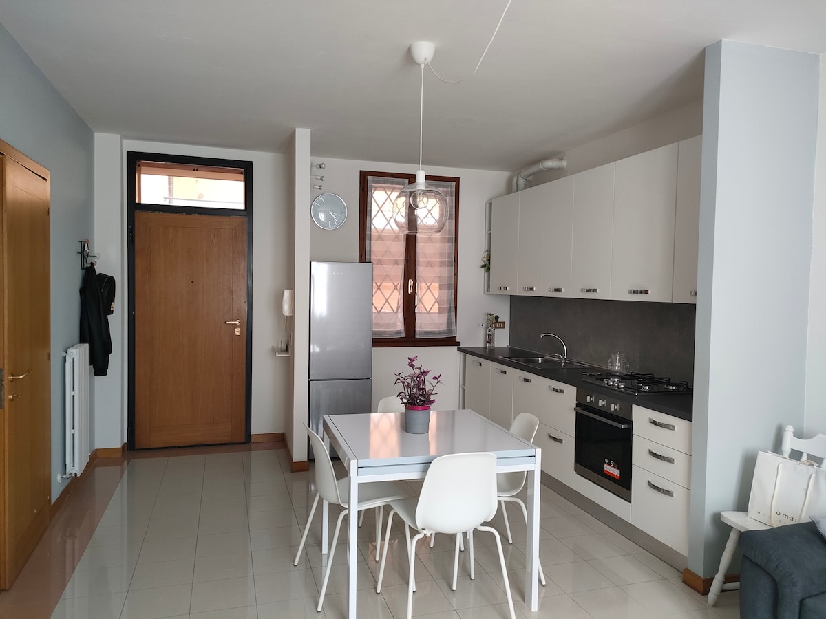 Il mio alloggio è situato nel centro storico di Minerbio, di fronte all'antica Rocca Isolani, a soli 30 minuti da Bologna, di fronte alla fermata dell'autobus 93 che arriva vicino alla Fiera e in pieno centro dove si trovano stazione ferroviaria ed autostazione. Tranquillo, nuovo e confortevole; fresco in estate. I principali negozi, edicola, bar e ristoranti sono situati sotto i portici di via Garibaldi. Piccolo giardino sul retro. NOVITA' 2020: INTERNET VELOCE ILLIMITATO.