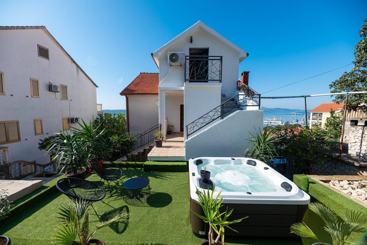 Con vista panoramica sulla baia di Stobreč e sulla foce del fiume Žrnovnica, la Garden View Villa, a soli 500 metri dalla spiaggia vicina, offre una vista incantevole, ma anche uno spazio giardino confortevole e tranquillo per momenti privati. Questa villa bifamiliare di 120 metri quadrati (1300 piedi quadrati) dispone di tre balconi coperti per godersi appieno la vita all'aperto, una terrazza in legno di 40 metri quadrati per prendere il sole sotto il sole del Mediterraneo, una zona soggiorno/pranzo con TV LCD via cavo da 50", una cucina in stile moderno completamente attrezzata e ventilatori a soffitto nel soggiorno e in tutte e tre le camere da letto. In uno dei bagni è presente una lavatrice/asciugatrice. Tutti gli arredi sono eleganti e moderni, e ci sono 3 bagni, di cui uno dispone di una vasca (idromassaggio). Tre balconi coperti per godersi appieno la vita all'aperto, una terrazza in legno di 40 metri quadrati per prendere il sole sotto il sole mediterraneo e un giardino privato ricco di piante mediterranee. Offrirò aiuto e consigli per tutta la durata del tuo soggiorno a Podstrana