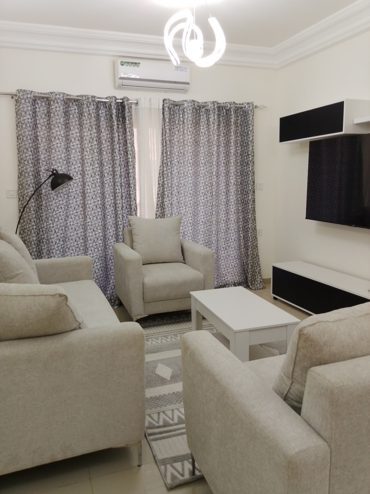 Luxury Diamniadio apt. at "SD City", 3 beds, AC, WiFi. Vicino al ministero, zona tranquilla. Completamente attrezzato, 2 bagni, lavatrice, scaldabagno, TV e canali satellitari. Scopri il comfort e la convenienza moderni nel nostro appartamento di alto livello splendidamente arredato, per il tuo comfort e convenienza . Edificio sicuro e ben tenuto. Perfetto per famiglie, gruppi, viaggiatori d'affari in cerca di una casa rilassante e ben attrezzata lontano da casa. 20 min aeroporto, 30 min Dakar.