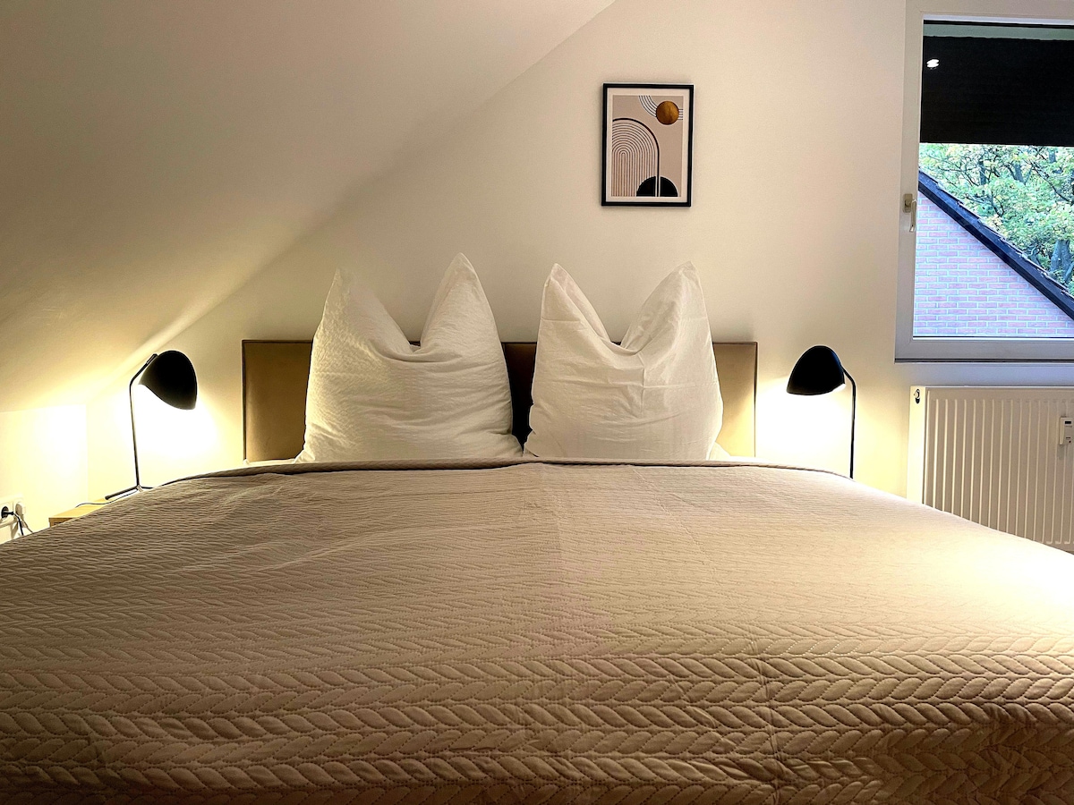 ☆ RELAX AND WORK IN ONE ☆ Das hochwertig eingerichtete 3-Zimmer Apartment ist perfekt für einen entspannten oder produktiven Aufenthalt geeignet → 24h Check-In → 87 m², perfekt für 2-4 Personen → 1 Schlafzimmer → 1 Gemütliches Boxspringbett 180x200 → Wohnzimmer mit TV und Schlafsofa → Arbeitszimmer mit höhenverstellbarem Tisch & Bildschirm → Zentral & dennoch ruhig → voll ausgestatteten Küche, Spülmaschine... → Waschtrockner → Philips-Kaffevollautomat → Highspeed WLAN → Parkplatz auf dem Hof.