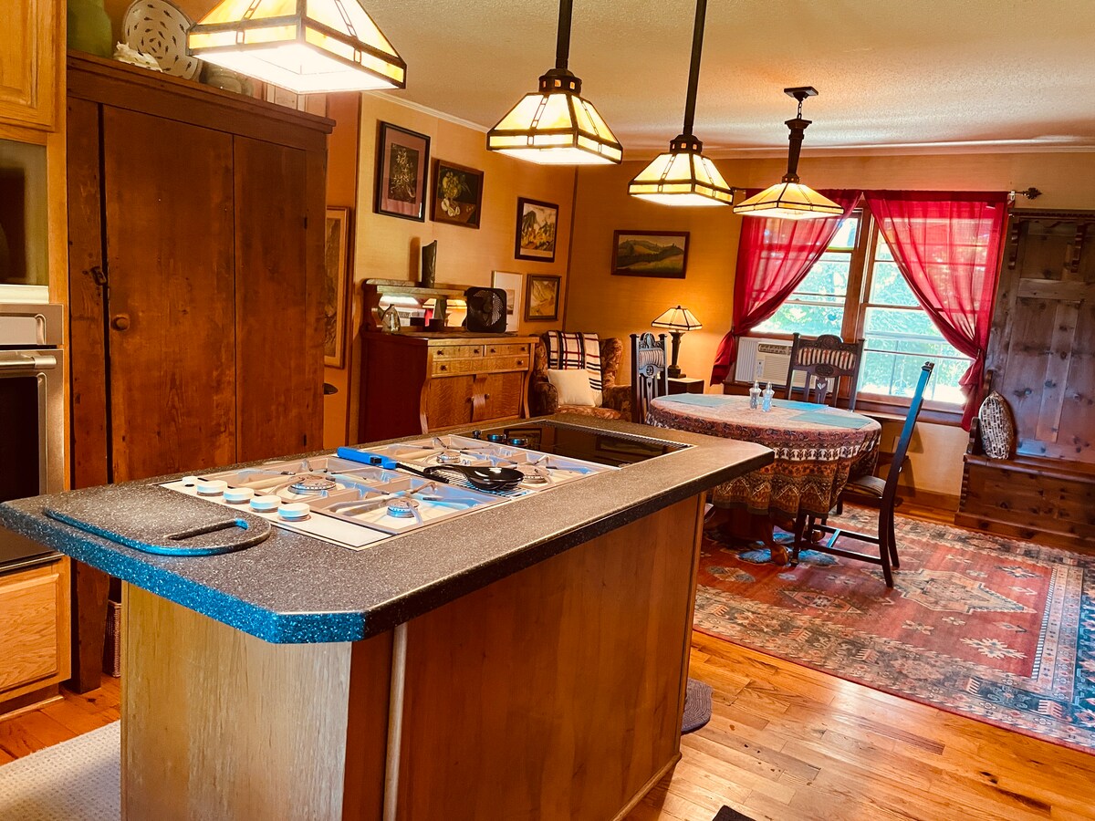 Privato Adatto agli animali domestici Tranquillo Spaziosa casa moderna di metà secolo 1 camera da letto con letto king size 1 camera da letto matrimoniale 1 vasca da bagno completa e doccia Wifi VELOCE Il tuo spazio di lavoro Cucina attrezzata Macchina del ghiaccio Un caffè! Patio con griglia, posti a sedere coperti da ombrellone Campo e vista incantevoli Un paradiso per gli appassionati di attività all'aria aperta, scrittori e artisti Ben e Lori sono una coppia di coniugi che possiedono e si prendono cura direttamente della proprietà con attenzione ai dettagli. Ti invitiamo a soggiornare nella tua casa lontano da casa!