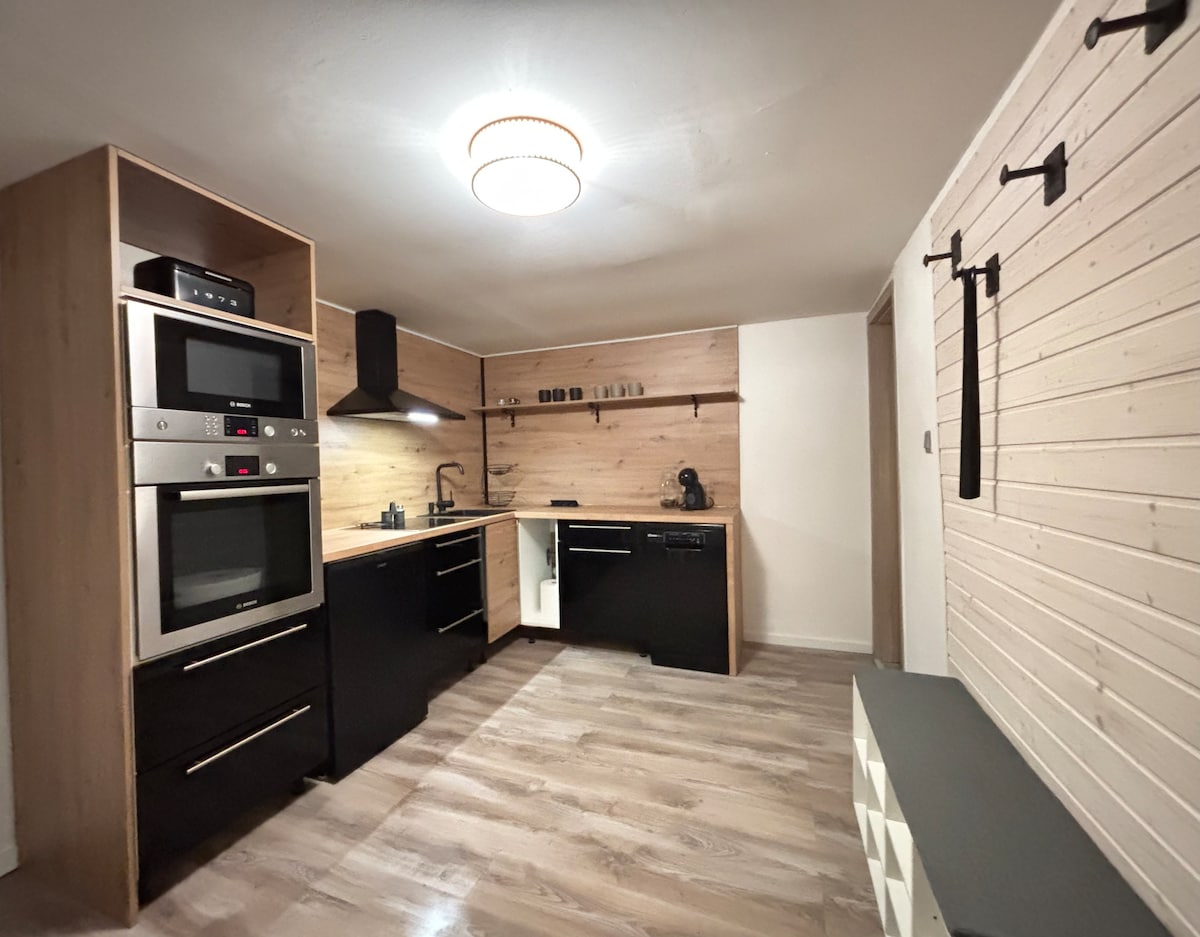 Nuovissimo resort Chalets Hrabovo. Ha ancora un odore nuovo, elegante e di servizi di qualità:) Questo appartamento dispone di 2 camere da letto, soggiorno con cucina, soppalco con materasso, bagno e terrazzo. È situata all'interno di un cottage dove si trovano altri due appartamenti. Ogni appartamento ha il proprio ingresso. Si trova direttamente sul bordo della pista da sci di Malinô Brdo Ružomberok. Posizione incredibile Hrabovo = nuoto, trekking, piste ciclabili, gastronomia, parco di corda. Colazione disponibile presso Fatrapark 2.