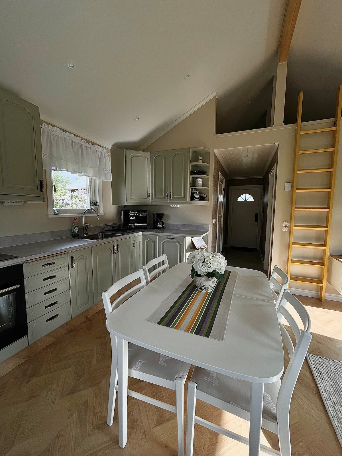 Benvenuti nella nostra casa, che è stata costruita e arredata di recente. 60 mq, con una camera da letto con letto matrimoniale e un letto a castello. Bagno fresco con doccia, lavatrice e asciugacapelli. Un ampio soggiorno con cucina. C'è anche un camino, una TV e un divano letto. Riscaldamento a pavimento in bagno e ingresso. Grande veranda. Il prezzo indicato è per tutte le persone fino a 4. La cucina è dotata di tutti i comfort come forno a microonde, frigorifero/congelatore, lavastoviglie, bollitore, tostapane e macchina per il caffè.