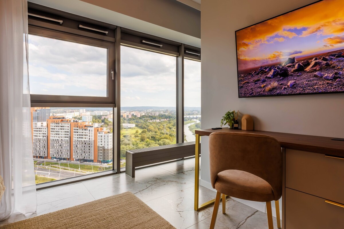 Moderno e confortevole appartamento situato all'11° piano in un edificio situato sul lungomare del lago, nel complesso di edifici Panorama Kwiatkowskiego a Rzeszów. La posizione dell'appartamento offre un'opportunità unica di contatto con la natura vicino al centro della città, a breve distanza dai viali di Rzeszów. Riposando in questo luogo, è possibile usufruire della spiaggia, del molo, della passeggiata, delle piste ciclabili e pedonali, dei parchi giochi, nonché dei negozi e dei ristoranti.