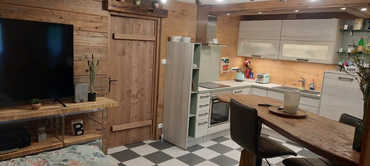Recentemente, gli ospiti della casa vacanze Kipnick hanno a disposizione lo chalet di nuova costruzione con balcone arredato e stufa a legna. Arredato in stile contemporaneo e moderno, lo chalet promette lusso e comfort nel mezzo dell'oasi verde del giardino architettonicamente magistrale della casa vacanze Kipnick. Il punto forte è la grande vasca da bagno con funzione idromassaggio nella zona giorno. In questo ambiente dal fascino raffinato, il relax e la decelerazione in vacanza sono garantiti.