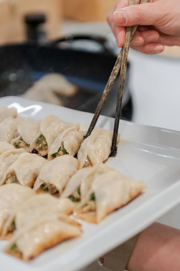Cucina e gusta insieme i ravioli cinesi