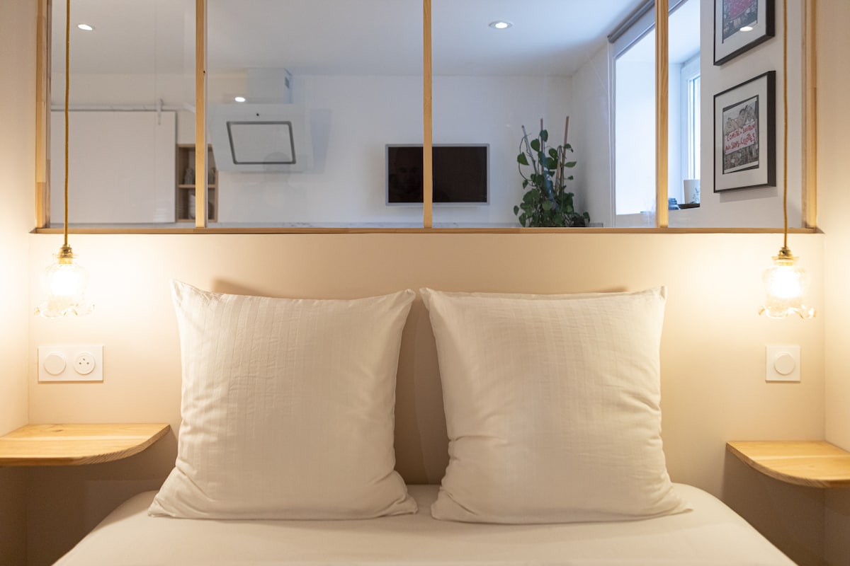 Venite a trascorrere un piacevole soggiorno in un alloggio indipendente e nuovo di 33m² che si trova nell'ampliamento della nostra casa situata in una zona tranquilla, a 2 km dal centro. Composto da una camera da letto, un soggiorno/cucina e un bagno. L'atmosfera è moderna e accogliente allo stesso tempo. Disponete di un ingresso indipendente e potrete parcheggiare nel nostro cortile privato e protetto da un cancello elettrico che può ospitare diversi veicoli.