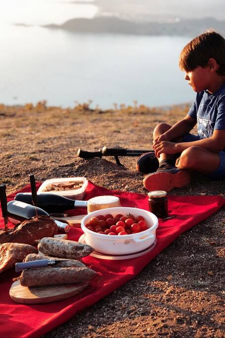 L'accesso al nostro cottage l'Albitru è un piccolo sentiero escursionistico che si snoda nel cuore della nostra tenuta. Si entra nella nostra capanna attraverso una passerella, lo spazio abitativo unico si offre a voi. La vista sulla valle dell'Ampugnani fino al mare è incredibile. Salite poi sulla terrazza sul tetto, siete senza peso... La prima colazione viene servita all'ora che preferite e "U Rifugiu" il nostro ristorante vi accoglie per la cena.