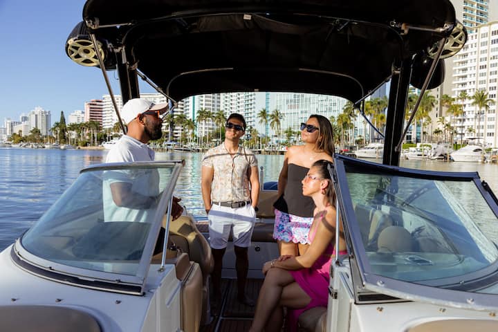 Skyline di Miami e crociera in barca su un banco di sabbia