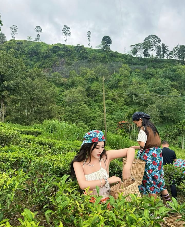 Trekking leggero attraverso una piantagione di tè