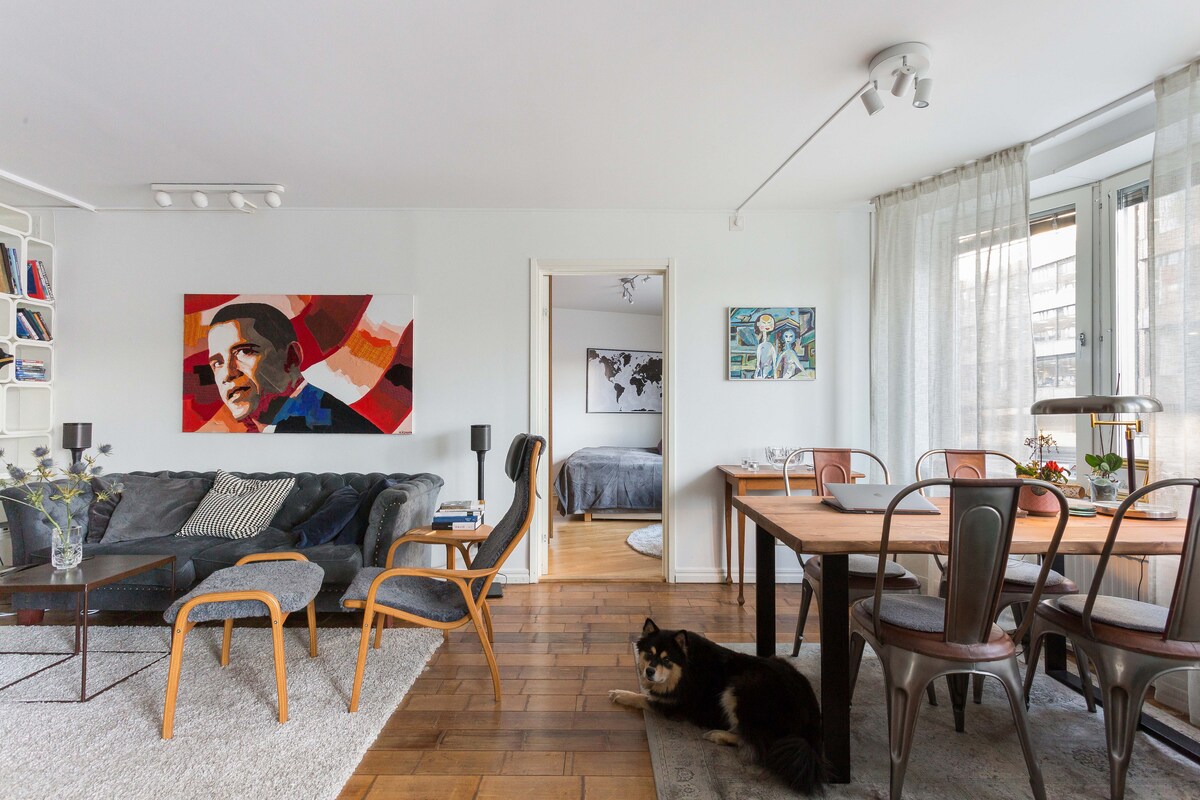 Benvenuto nel mio grande e confortevole appartamento con una camera da letto nel cuore del vivace quartiere di Stoccolma, SoFo, ricco di negozi alla moda e caffè accoglienti. La disposizione aperta e ariosa dell'appartamento ti invita a rilassarti dopo una giornata in città; puoi preparare qualcosa di delizioso nella cucina completamente attrezzata, anche se non rimarrai mai senza opzioni con un sacco di ristoranti proprio dietro l'angolo. A 15 minuti a piedi dal centro storico, a 4 minuti a piedi dalla stazione della metropolitana e con wifi superveloce.