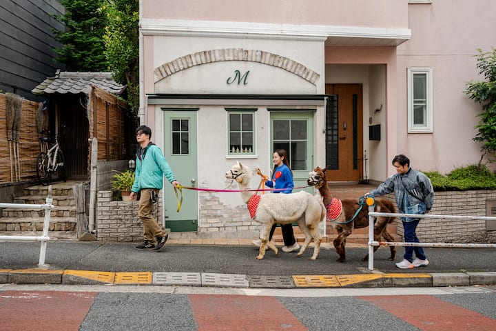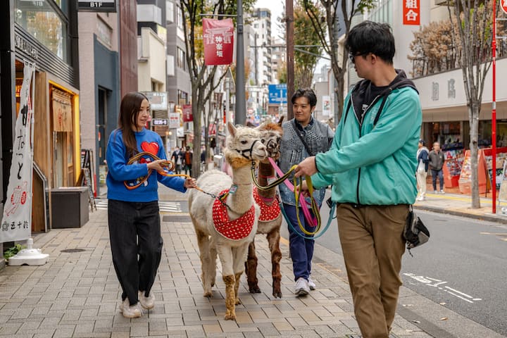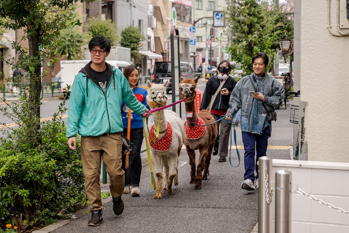 Passeggiata con gli alpaca a Kagurazaka