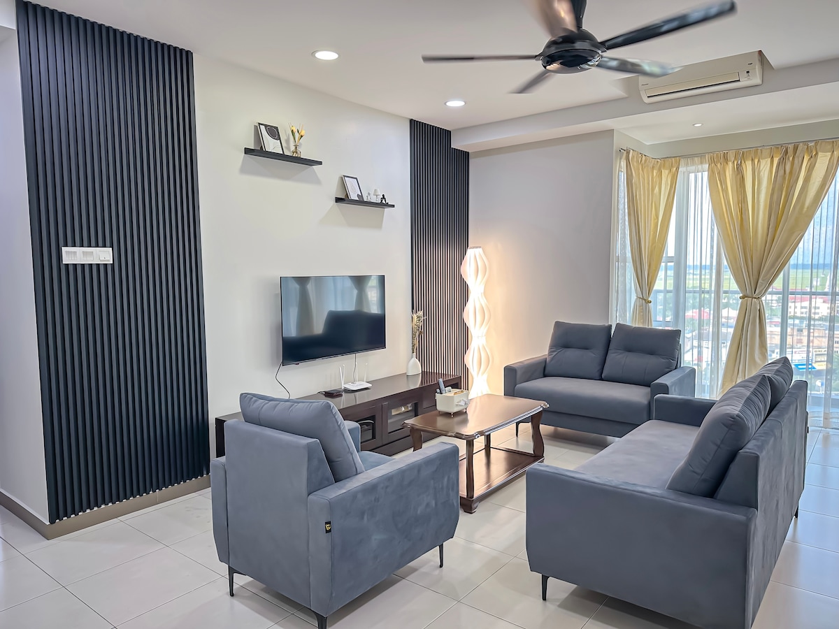 Countryside Condominium @ Sekinchan può ospitare fino a 10 persone. È di 1400 piedi quadrati e si trova in una posizione strategica. I servizi includono Astro (Njoi), 1 balcone, 1 soggiorno, 1 sala da pranzo e 1 cucina. È dotato di un divano letto, una TV da 40 pollici e un condizionatore d'aria. La cucina è dotata di molti utensili. Dotati di doccia, i bagni privati sono dotati di asciugacapelli. Tutte le camere sono dotate di comodo letto, aria condizionata, ventilatore e biancheria da letto appena lavata.