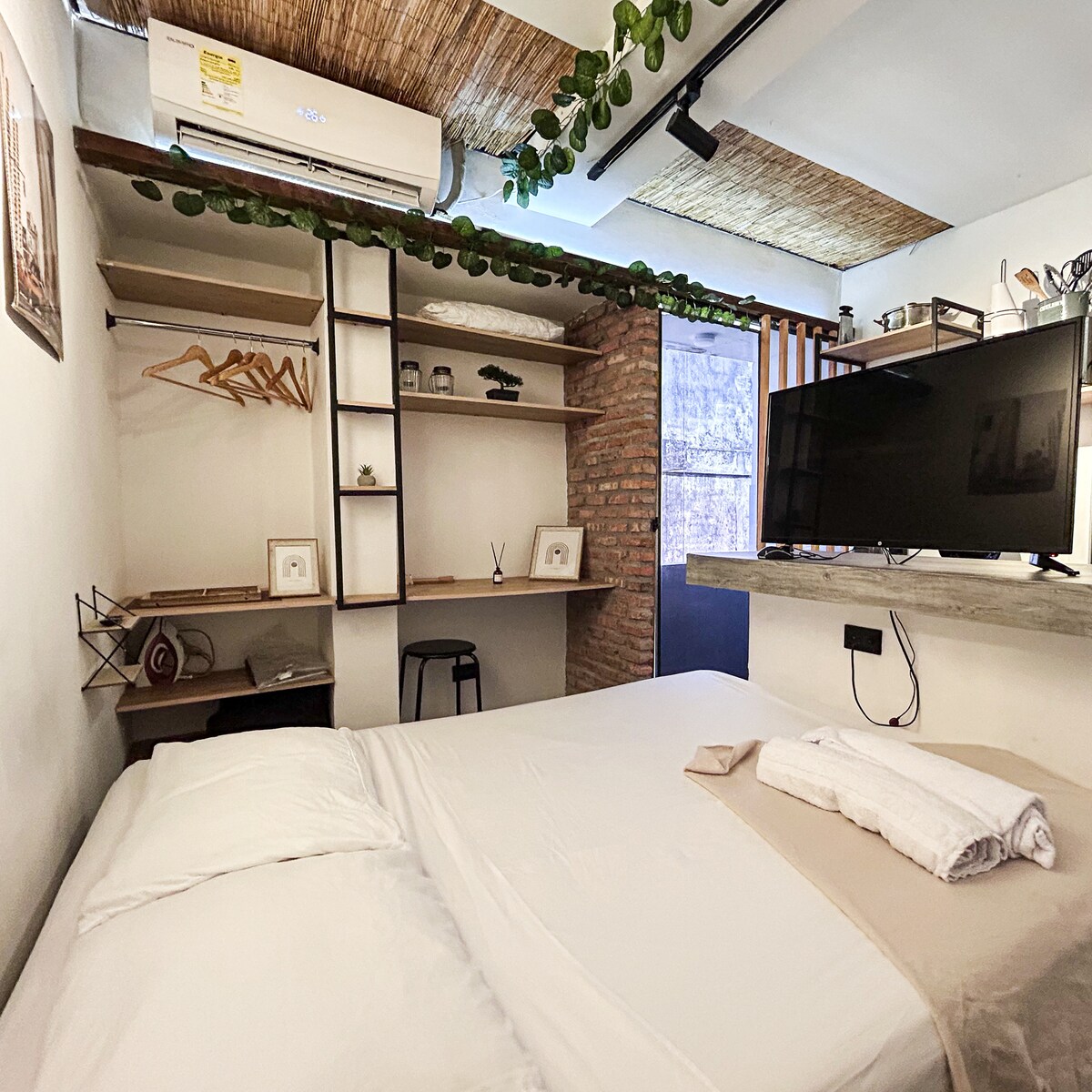 alloggio boutique bellissimo piccolo monolocale con bagno, cucina privata, fornelli, forno a microonde, frigorifero minibar, frullatore dotato di utensili necessari per un buon soggiorno. All'interno della camera letto matrimoniale 2 persone aria condizionata smart TV, wifi gratuito edificio con area coworking, palestra siamo a nord di Barranquilla, tranquillo sicuro, vicino a parchi per attività fisica, vicino a centri commerciali, ristoranti, farmacie e altro divertimento! interno non vista è interno, impeccabile, autonomo,