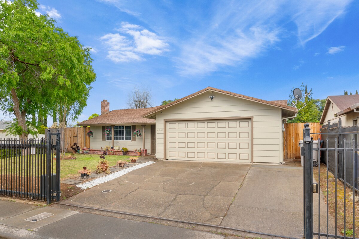 Ti diamo il benvenuto a Sacramento! Questa casa è completamente ristrutturata di 1.700 piedi quadrati! Arredi moderni e comodi servizi ti fanno sentire come a casa! Elettrodomestici, letti e biancheria da letto nuovi! La piscina è mantenuta professionalmente con acqua cristallina. Cortile privato e un enorme patio ti fanno venire voglia di stare a casa! Barbecue in giardino! La casa è in posizione centrale! 10 min dal centro, 2 min dalla Highway 50, 15 min da Cal Expo! 20 min dall'aeroporto!