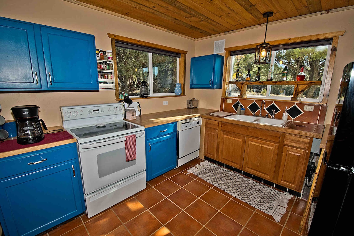 Questa è una piccola e tranquilla meta con molte opzioni. La casa è immersa tra gli alberi proprio sulla Willow Creek Greenbelt, con un sentiero, alberi antichi e il mormorio del torrente Willow. Si accede alla cintura verde dal retro del lotto. Tra i bellissimi ginepri, i pini piñon e ponderosa del lotto, si può godere di una splendida vista sulle montagne dal cortile posteriore e dalla casa. È il luogo ideale per riconnettersi con la natura. C'è una ripida scala (con un robusto corrimano) per la camera da letto, di cui tenere conto.