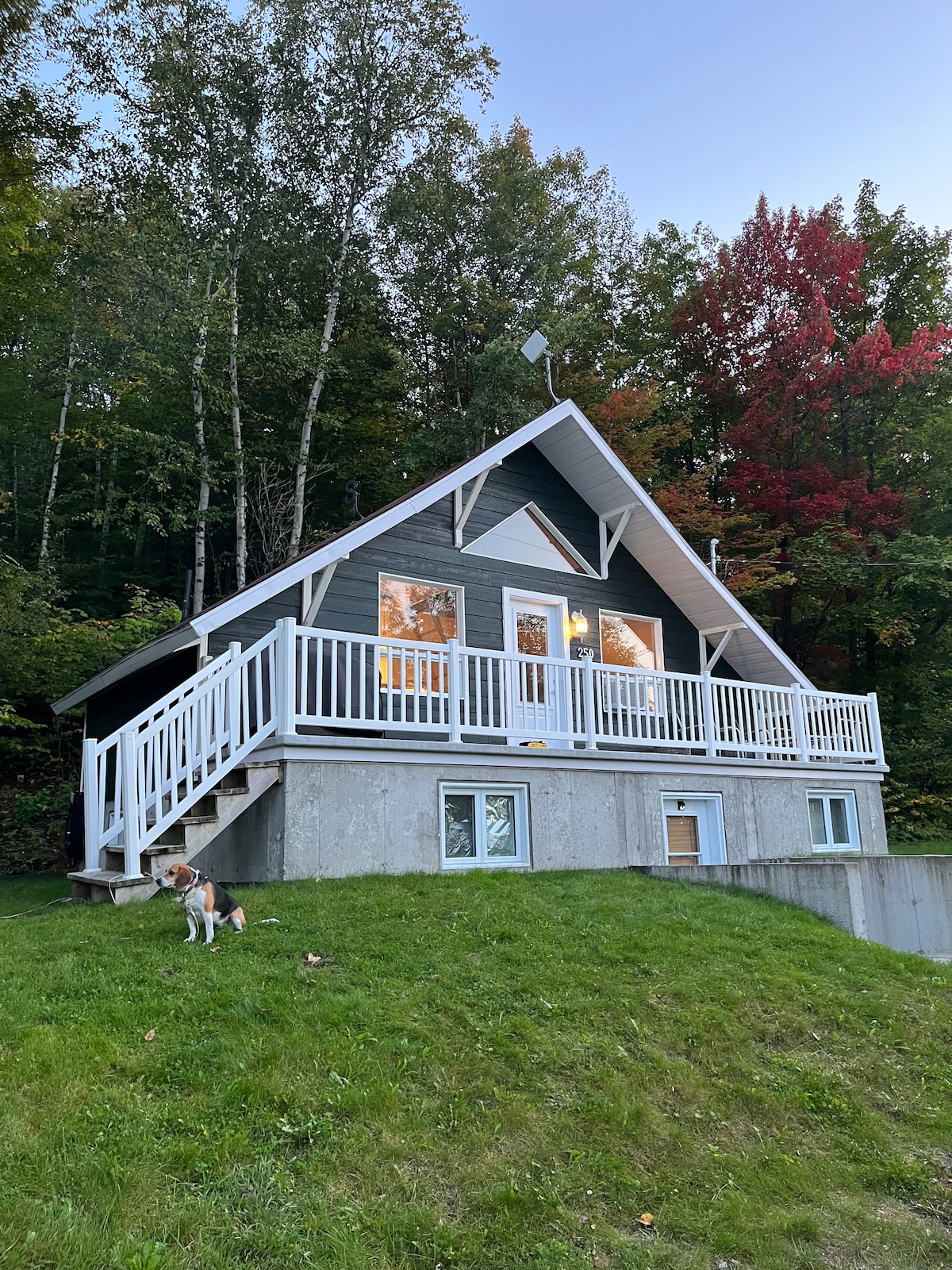 Cozy chalet located 400 meters from the Mont Édouard ski lift. In winter, enjoy the ski resort, backcountry area and snowshoe / cross-country trails. In summer, go to the mountain bike trails, pedestrian trails and the municipal swimming pool, without taking the car! The cottage is very well equipped, with 4 bedrooms, an open space upstairs and a living room in the basement. Outside, there is a large landscaped lot, with space for campfire.