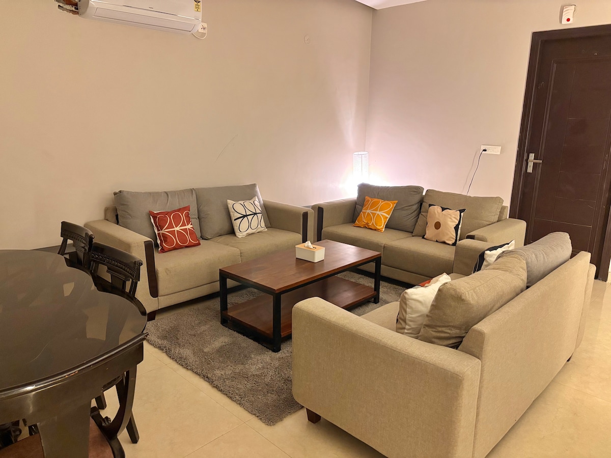 Aura di positività con vibrazioni rilassanti che forniscono un vero e proprio conforto all'anima... la tranquillità di cui si ha bisogno nell'era della tensione, lontano dal brusio e dal clamore... ogni parete dell'alloggio è elegantemente decorata con decori alla moda. Le luci alla moda aggiungono la ciliegina sulla torta e la rendono super jazzata. La vista dal balcone è squisita, carismatica. La PULIZIA aggiunge sempre grazia a tutto... un luogo ben curato con la sua igiene impeccabile, che sicuramente renderà il vostro soggiorno piacevole e giustificabile...